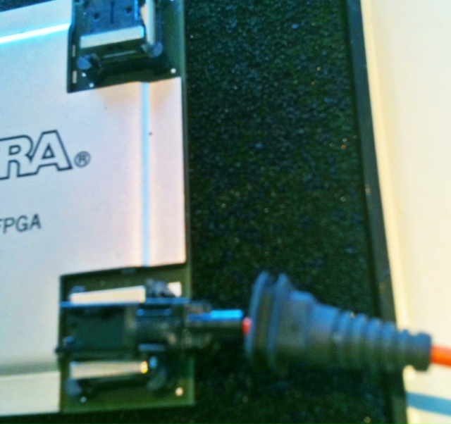 Altera’s optical FPGA technology demonstrator combines a large FPGA – a Stratix IV EP4S100G5 – to two Avago ‘MicroPod’ 12×10.3 Gigabit-per-second (Gbps) optical engines.