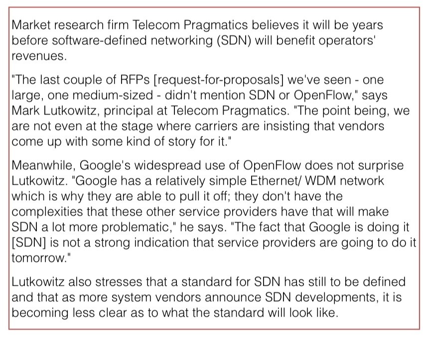 “The fact that Google is doing it [SDN] is not a strong indication that service providers are going to do it tomorrow”