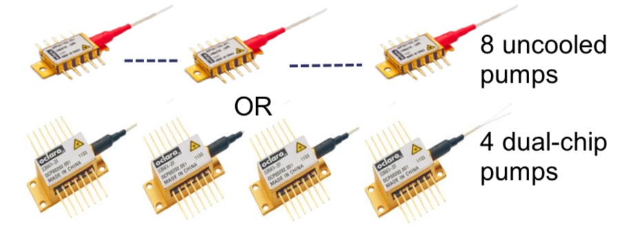 Two schemes are being considered. One option is to use one high-power pump coupled to variable pump splitters that provides the required pumping to all the amplifiers. The other proposal is to use discrete, multiple pumps with a pump used for each EDFA.
