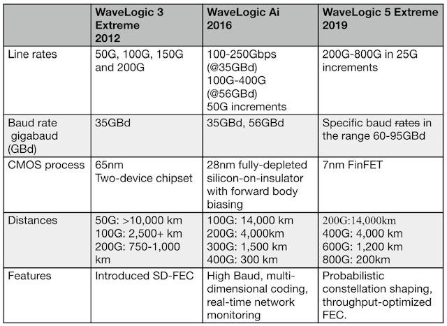 The WaveLogic 5 continues Ciena’s tradition of issuing a coherent digital signal processor (DSP) family approximately every three years: Ciena announced the WaveLogic 3 in 2012 and the WaveLogic Ai in 2016. (Add links).