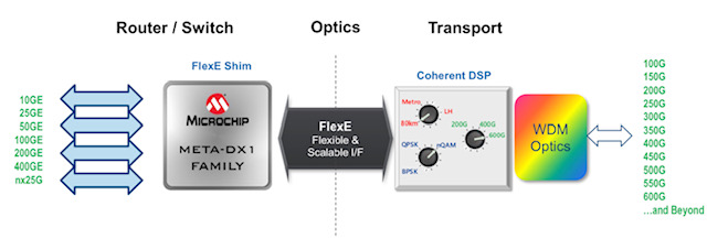 He cites an example of sending 275 gigabits over an optical link. By placing the FlexE-enabled Meta-DX1 on a switch or a router, the IC can mark some of the ‘calendar slots’ used in FlexE as unavailable.