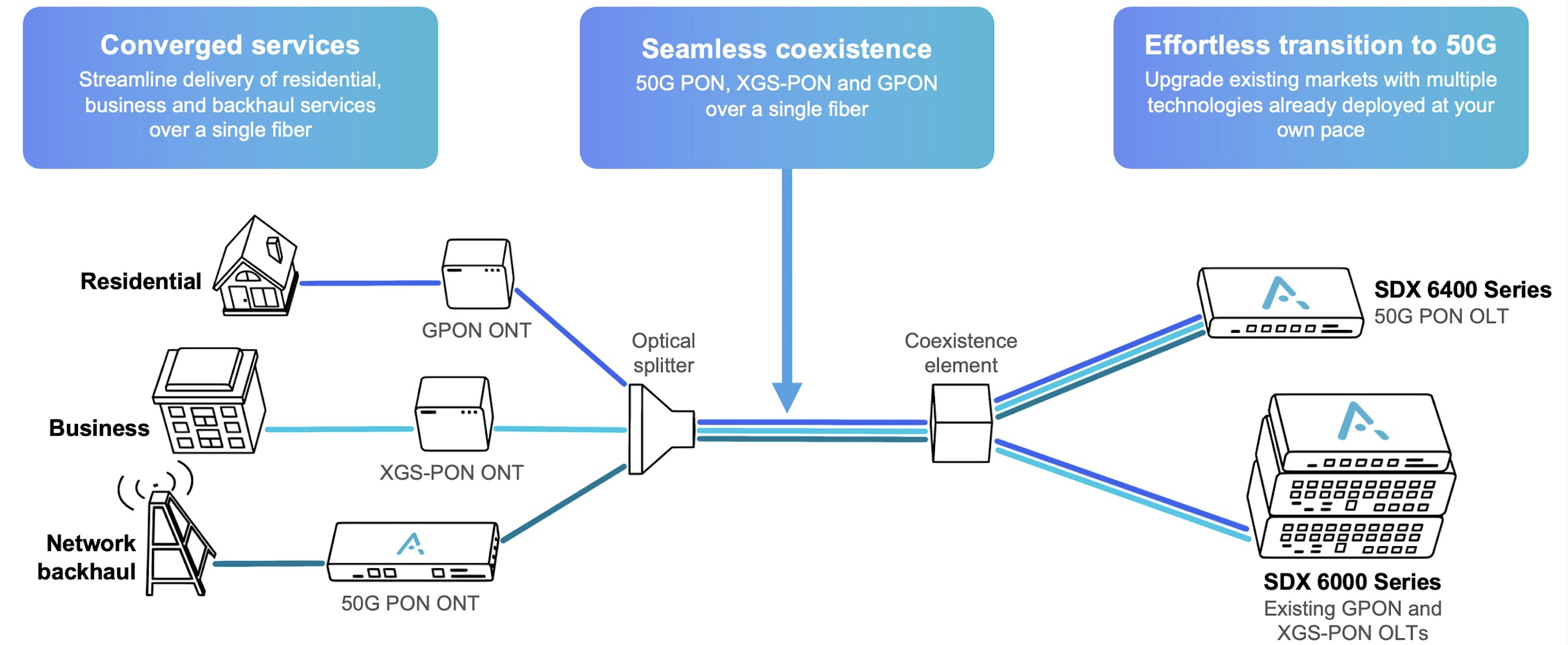 Adtran favours 50G-PON because it is a standard. “The ITU-standardised generations of PON (GPON, XGS-PON and 50G PON) all co-exist and are the recommended evolutionary steps in the access network,” says Rettenberger.