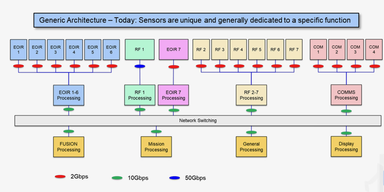 Lockheed Martin proposed architecture uses two generic sensor types – RF and EO/IR – which can be pooled as required (see diagram below).
