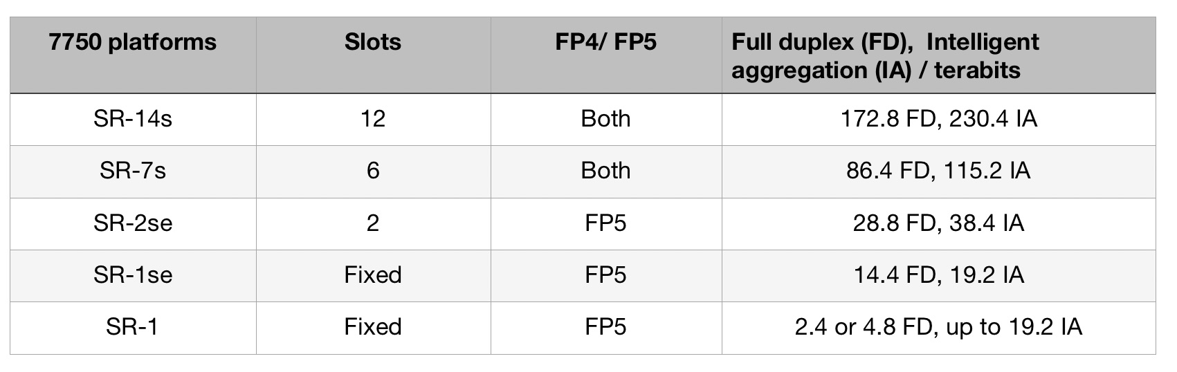 The platforms using the FP5 are the existing 7750 SR-14s and 7750-SR7s routers that were announced with the launch of the FP4.