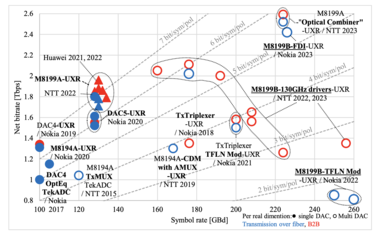 Keysight Technologies' chart plots the record-setting optical transmission systems of recent years.