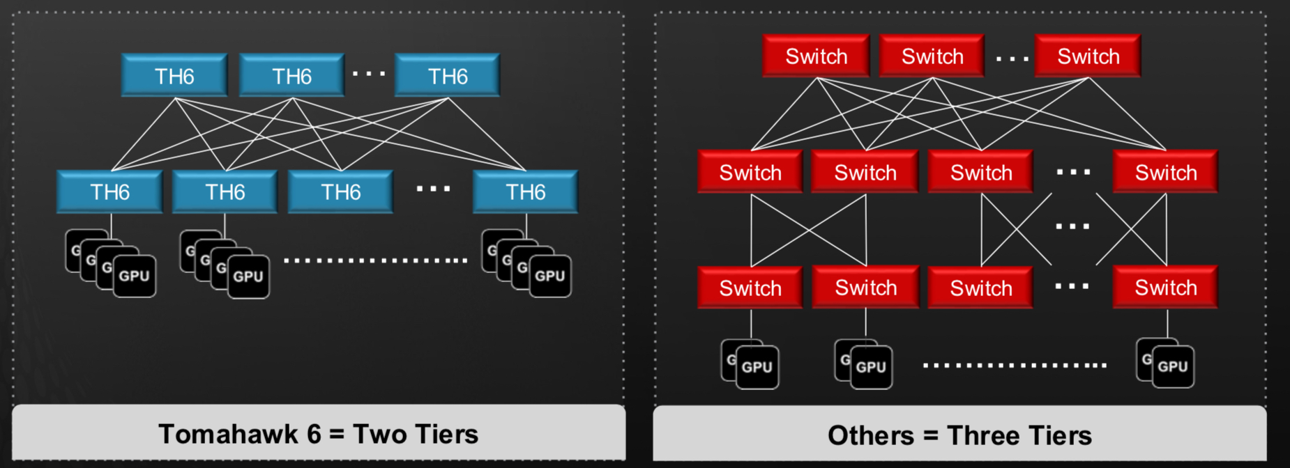 Tomahawk 6 supports two-tier networks connecting up to 128,000 AI accelerator chips, such as graphic processor units (GPUs). This assumes 200 gigabits per endpoint, which may be insufficient for the I/O requirements of the latest AI accelerator chips.