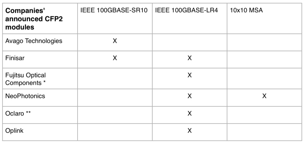 The first CFP2 modules are expected this year - there could be vendor announcements as early as the upcoming OFC/NFOEC 2012 show to be held in LA in the first week in March. The first CFP4 products are expected in 2013.
