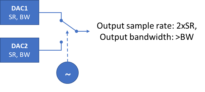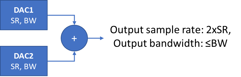 Multiplexing two DACs. SR refers to sample rate, BW refers to bandwidth. Source: Keysight.
