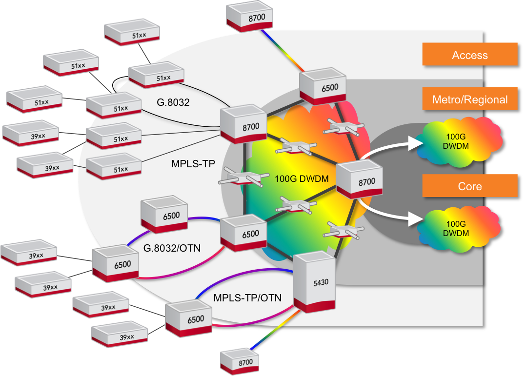 The 8700 can be viewed as a slimmed-down packet-optical transport system (P-OTS), tailored for Ethernet. The platform's packet features include Ethernet and MPLS-TP for connection-oriented Ethernet, while optically it has 100 Gigabit coherent WDM.