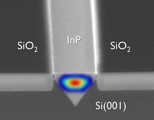 The defects propagate along the v-groove and are confined to a layer 20 nm thick compared to alternative approaches that grow the indium phosphide across a wafer where defects propagate several microns deep. The bulk of the deposited material is of high quality, says Van Thourhout.