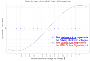 A second issue is the non-linear nature of the optical modulator’s transfer function. “It’s a sine non-linearity type of response in Mach-Zehnder modulators due to the nature of interference,” says Tomkos.