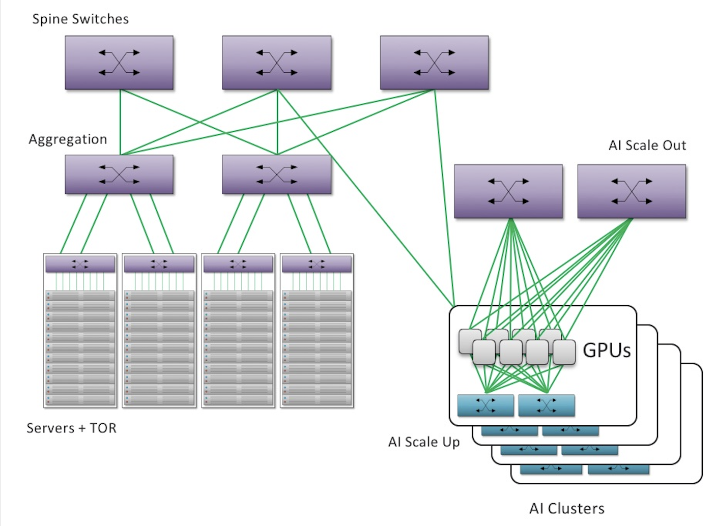 In a large-scale data centre, two or three tiers of electrical switch platforms link the many servers’ processors. The number of tiers needed depends on the overall processor count. The same applies to the back-end network used for AI workloads. These tiers of electrical switches are arranged in what is referred to as a Clos or “Fat Tree” architecture.