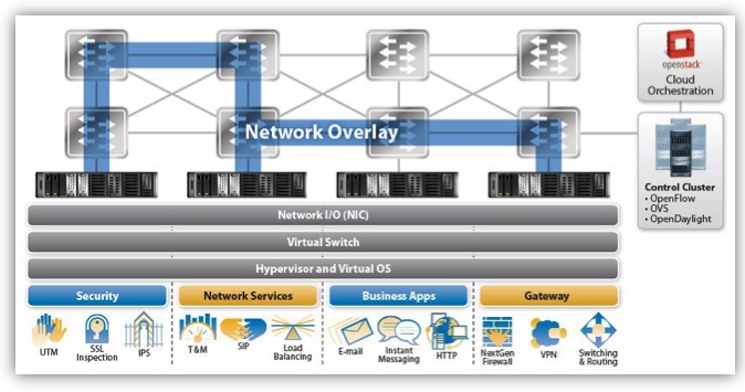 In the data centre, software-defined networking (SDN) uses a central controller to oversee the network connecting the servers. A server's NIC provides networking input/ output, while the server runs the software-based virtualised switch and the hypervisor that supports virtual machines and operating systems on which the applications run. Applications include security tasks such as SSL inspection, intrusion detection and intrusion prevention systems; load balancing; business applications like email, the hypertext transfer protocol and instant messaging; and gateway functions such as firewalls and virtual priviate networks (VPNs).