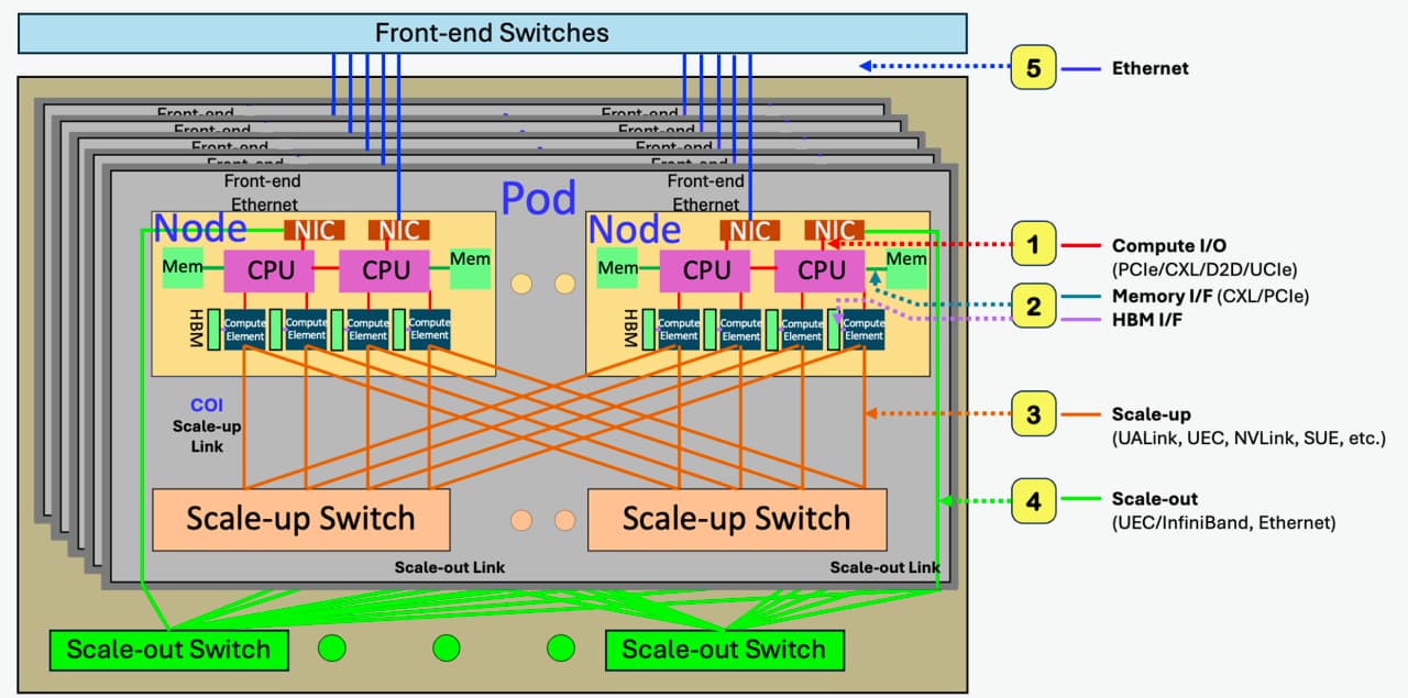 One debate to be resolved is the choice between slow-and-wide links and fast serial ones for scale-up. What should be asked here is what can be built in volume, reliably, and in time, says Hutchins.